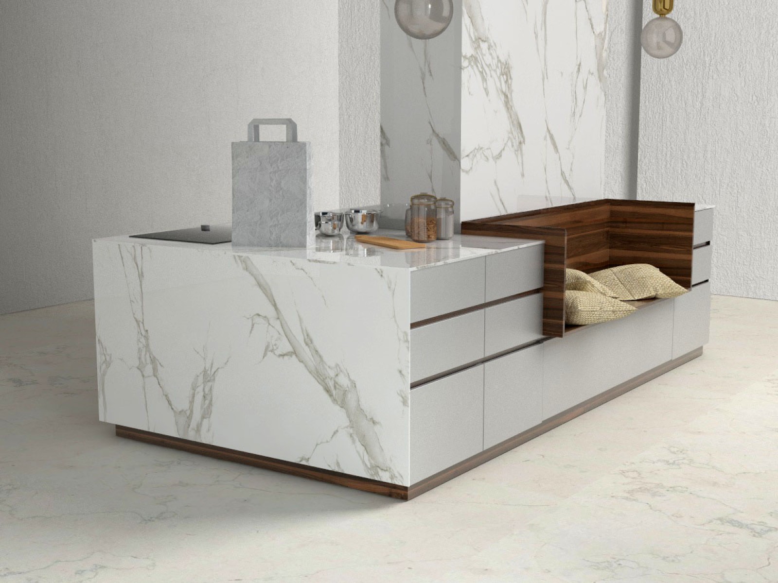 Una cucina atipica dove chi l’adopera ci gira intorno, tutto a portata di mano, nessun contenitore scomodo o alto, è un nuovo modo ergonomico di concepire la zona più importante della casa la “Cucina”