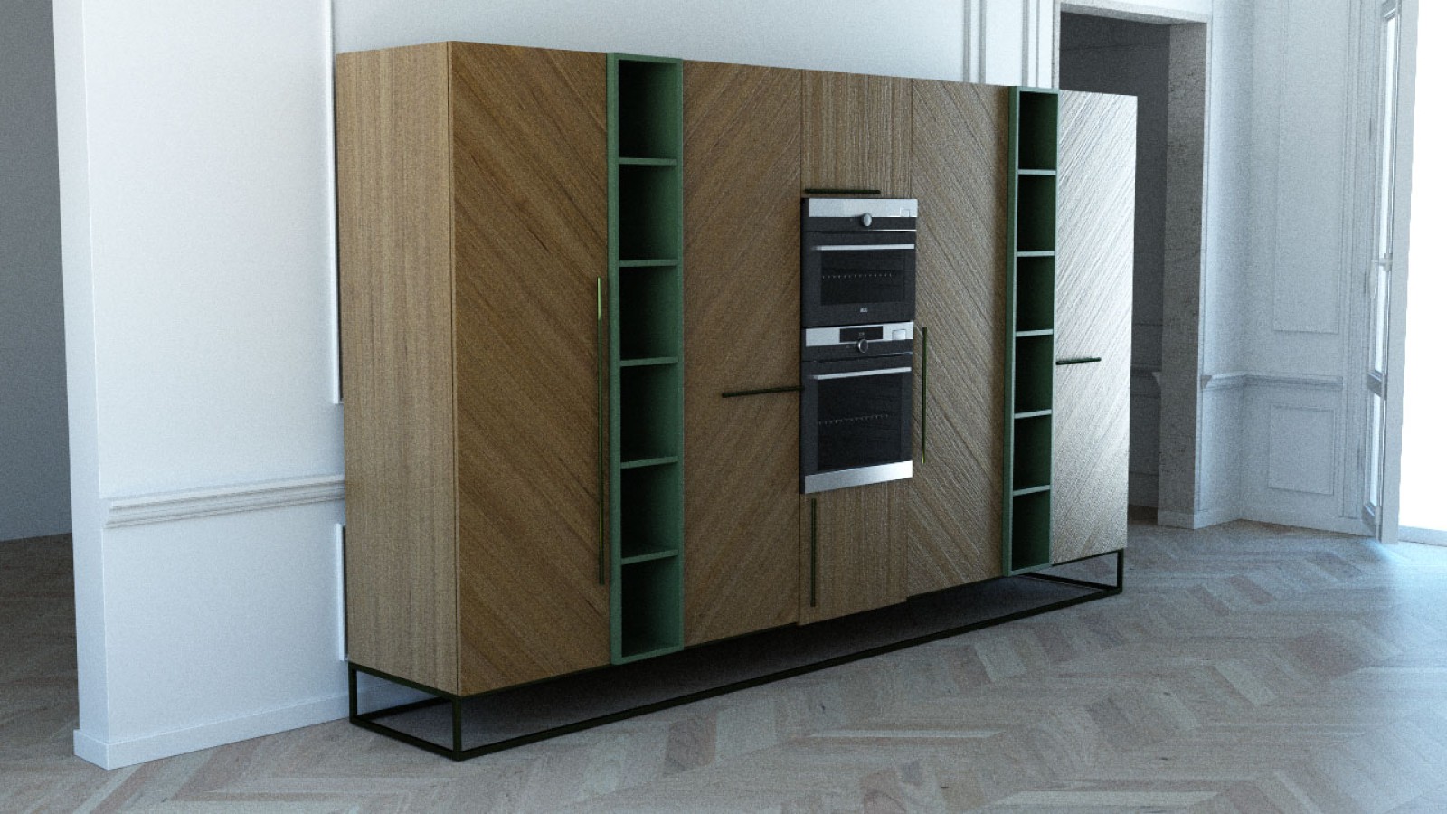 I materiali pregiati e la cura nei dettagli sono evidenti in ogni angolo della cucina, dai pannelli del mobile alle finiture delle maniglie, esaltando un perfetto equilibrio tra tradizione e innovazione. La progettazione accurata e l'attenzione alle tendenze contemporanee rendono questa cucina un esempio di eleganza senza tempo, adatta a chi cerca qualità e design esclusivo in un ambiente domestico.