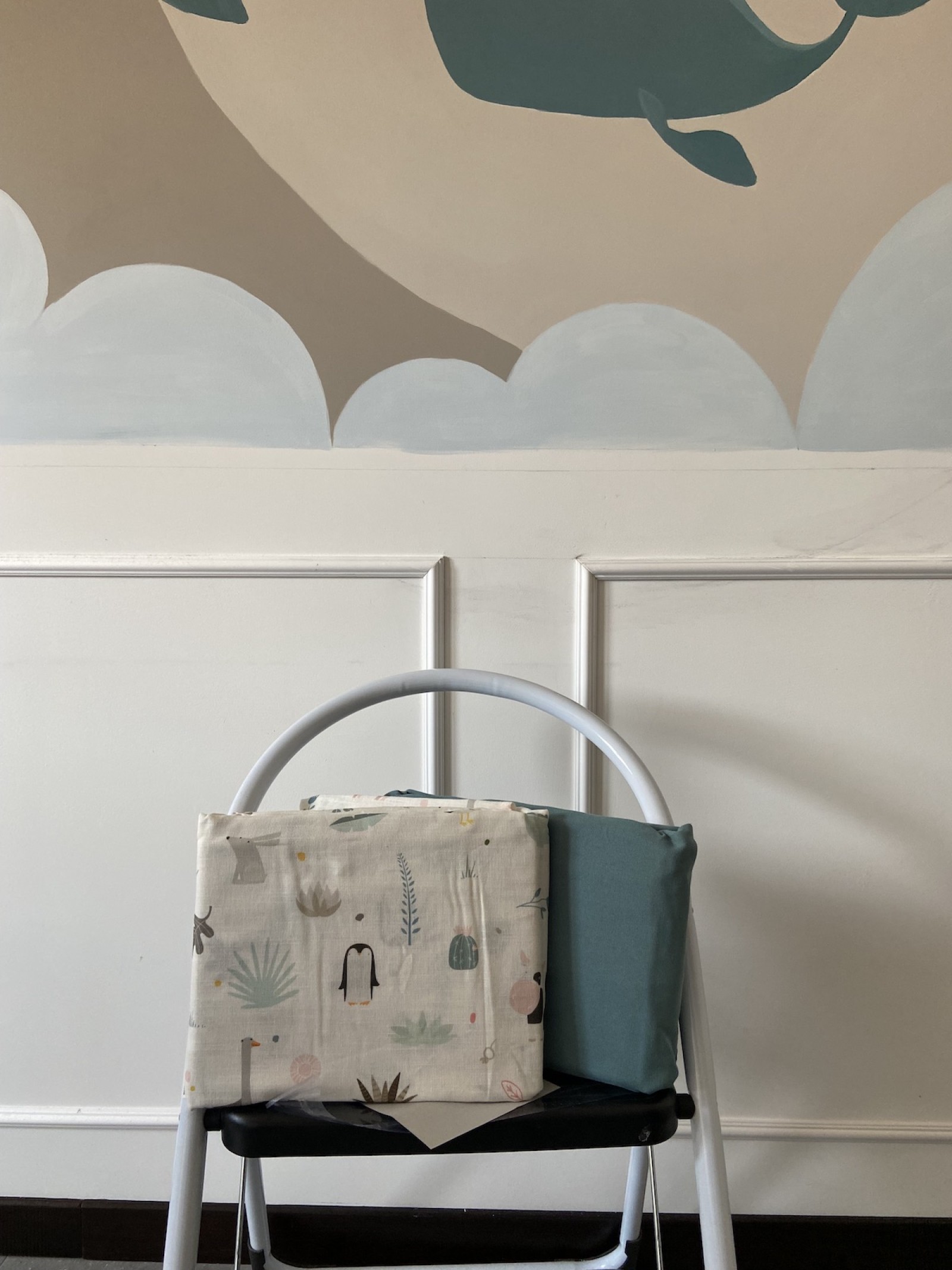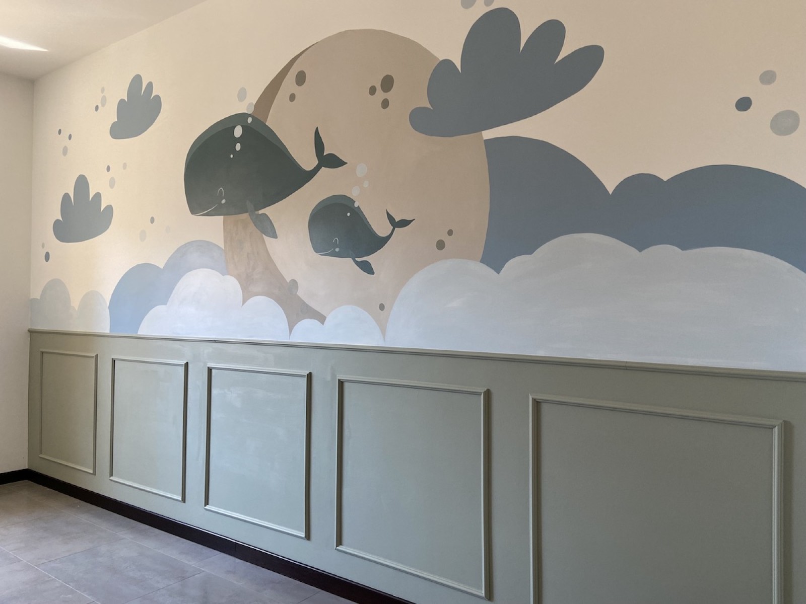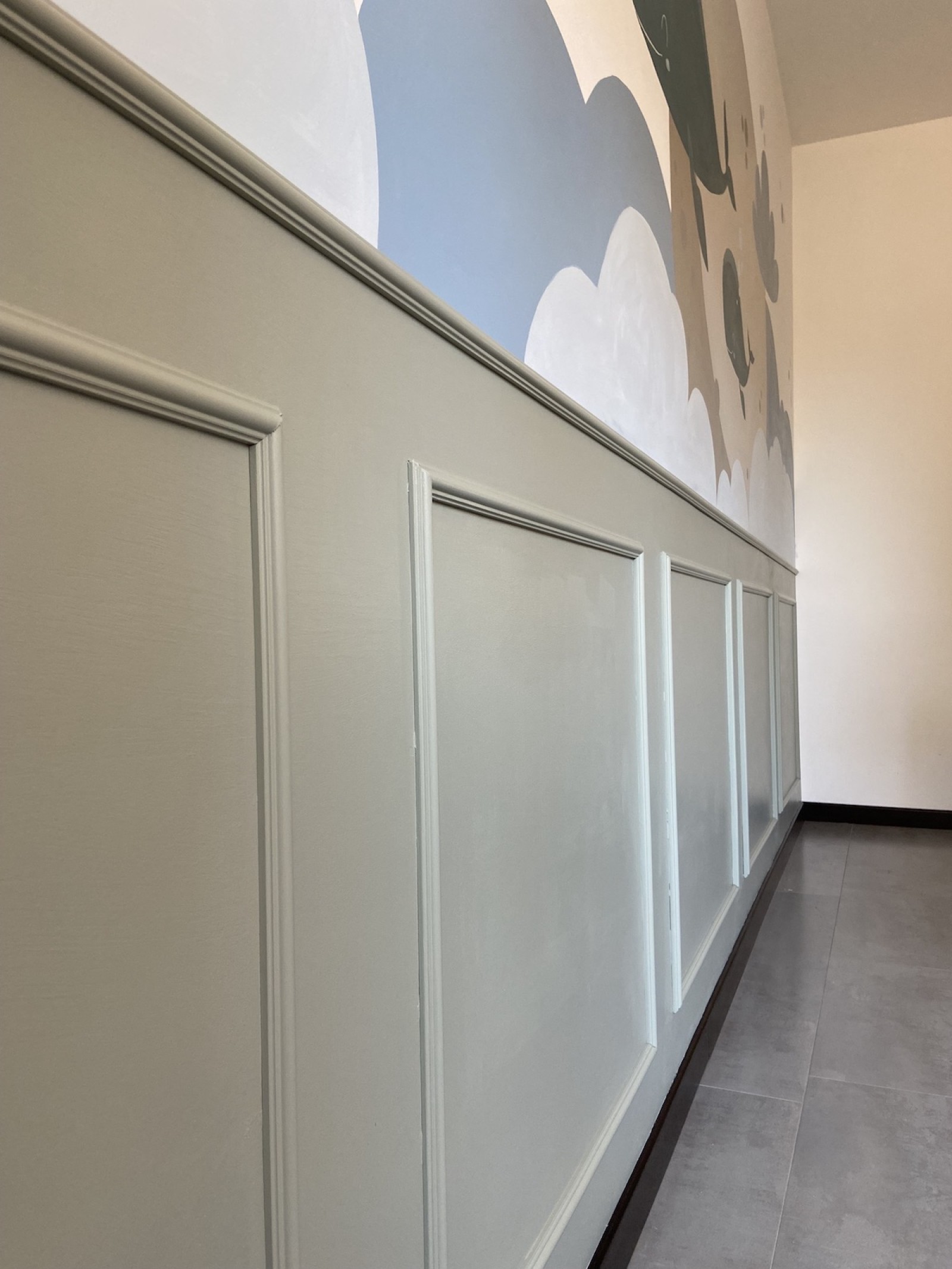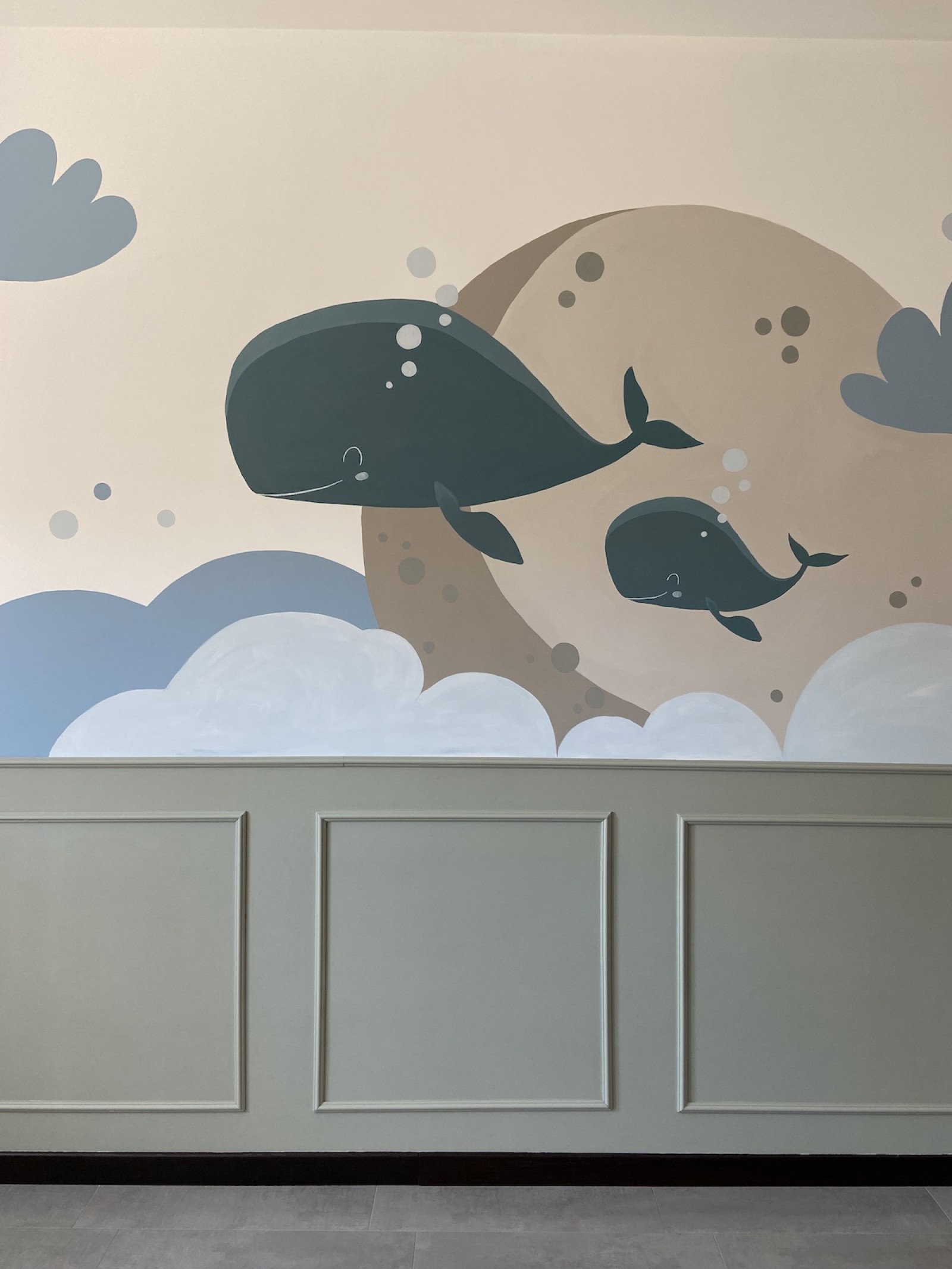 Il neonato ha bisogno di colori tenui, pastello, che trasmettono tranquillità, come quelli che ho realizzato a mano per questa cameretta, con decorazioni semplici, stilizzati, con forme morbide, tutto ciò trasmetterà tranquillità al piccolo e non solo, più andrà avanti con i mesi e più sarà stimolante perché riconoscerà le forme.